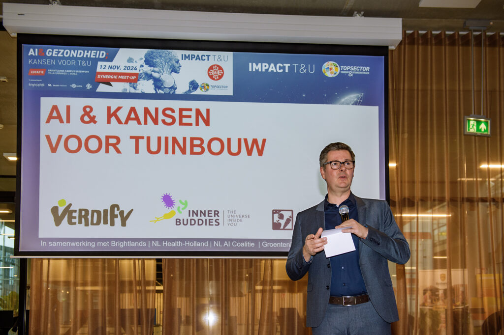Op dinsdag 12 november verzamelden zich zo’n 50 stakeholders uit de tuinbouw op Brightlands Campus Greenport Venlo voor de IMPACT MeetUp ‘AI en gezondheid: kansen voor T&U’. Hoe kun je AI inzetten om het gezondheidsprofiel van tuinbouwproducten te versterken? Bij de opening liet moderator Glenn van der Burg zien hoe simpel het is een chatbot…